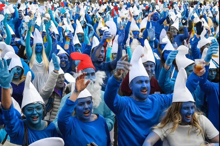 就在此前一天,一股蓝色的旋风刚刚刮过。3月7日,在千人聚会禁令下达之前,法国西部的Landerneau地区举行了声势浩大的蓝精灵聚会。3549个蓝精灵的到来,打破了德国保持的2762个蓝精灵集聚的吉尼斯纪录。