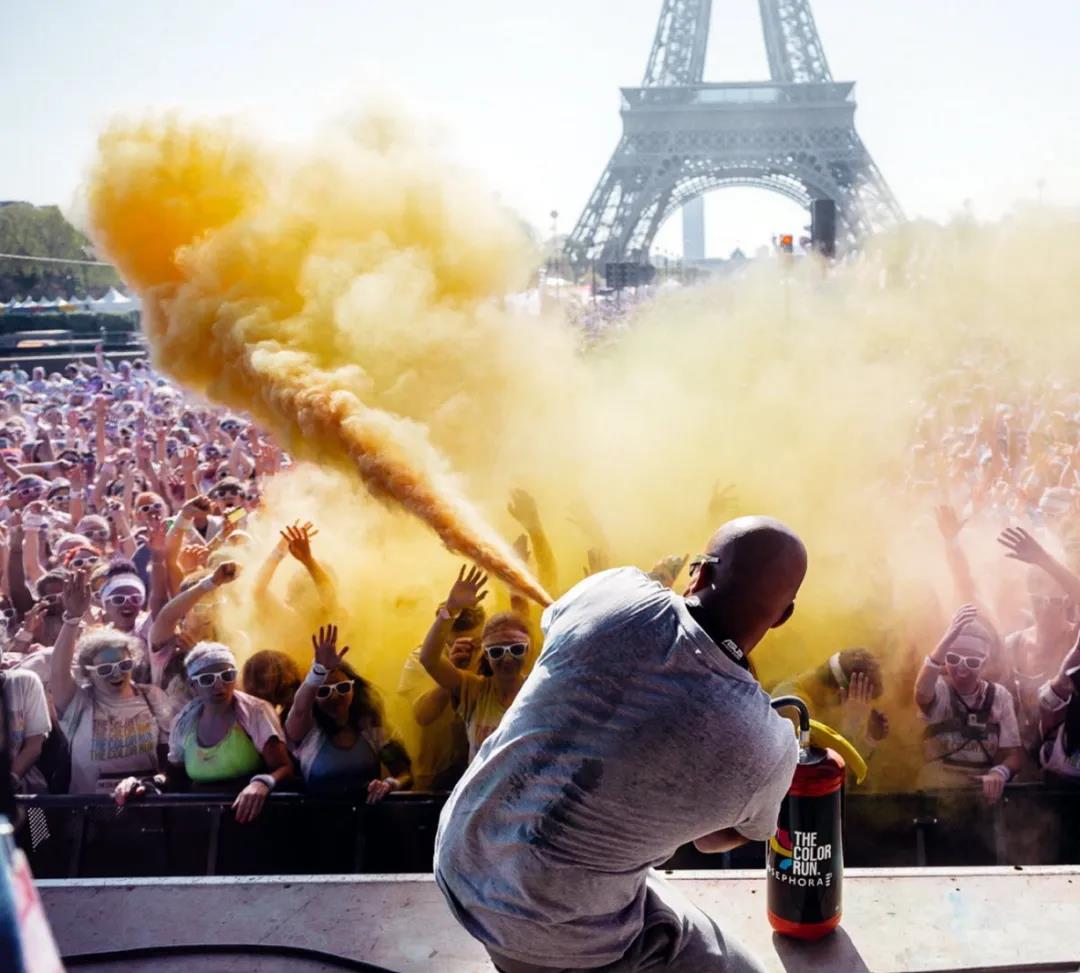 在赛程中,每公里都有相应的色彩区域。志愿者将会抛撒由玉米粉制成的彩粉,黄、绿、蓝、粉,每一种色彩的飞扬都是一场狂欢。许多在法国的小伙伴是不是已经慕名而来体验过了?