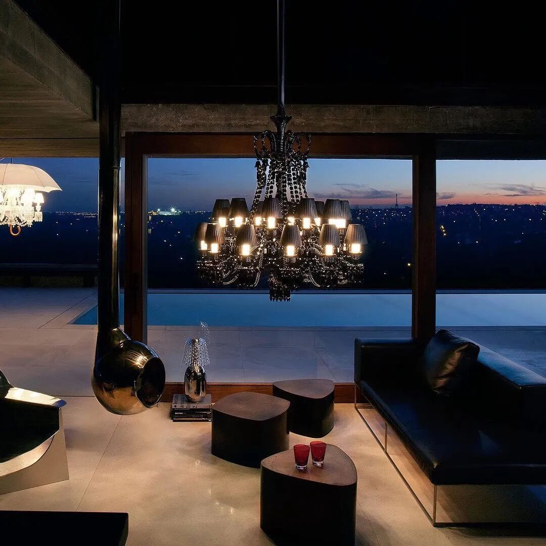 此外,品牌还请来了大师菲利普·斯塔克(Philippe Starck),以奇妙的设计融合透明水晶、粉红色水晶、灰色水晶和磨砂饰物,制作出了独特的黑色水晶吊灯。