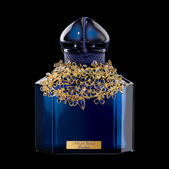 为纪念蓝调时光香水的百年诞辰,娇兰曾邀请巴卡拉制造了一款独一无二的香水瓶。瓶身采用顶级巴卡拉蓝色水晶,点缀金色花瓣装饰,深邃、神秘又高贵。全球限量43瓶。